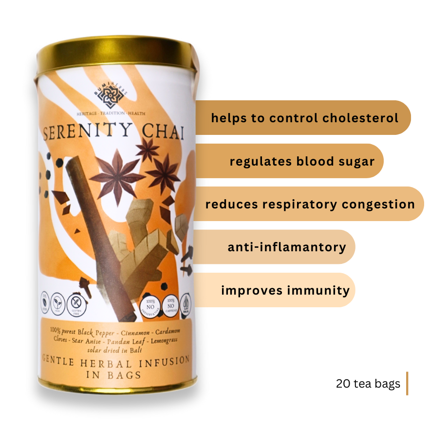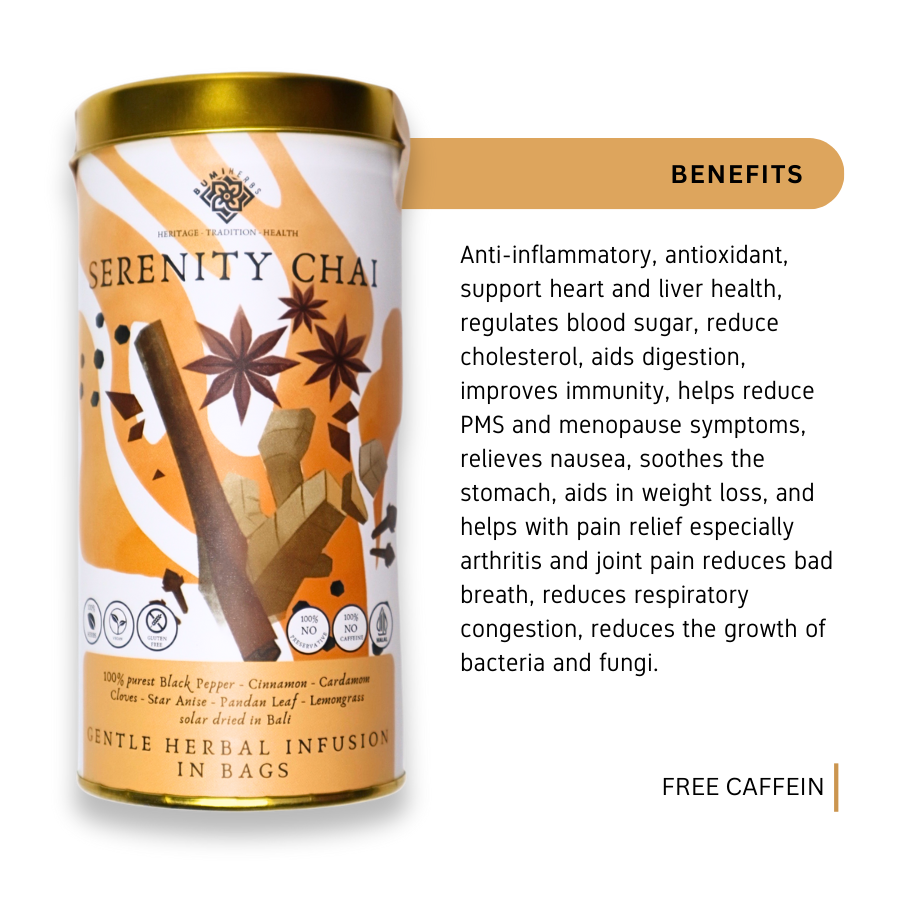 Rich in antioxidants and has anti-inflammatory properties that detoxify the body and support wellness. It aids digestion, regulates blood sugar, and promotes relaxation.