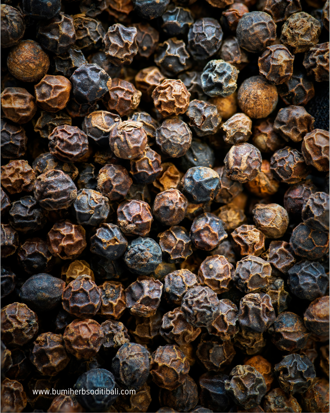 Black pepper aids digestion, enhances nutrient absorption, and provides antioxidant and anti-inflammatory benefits.
